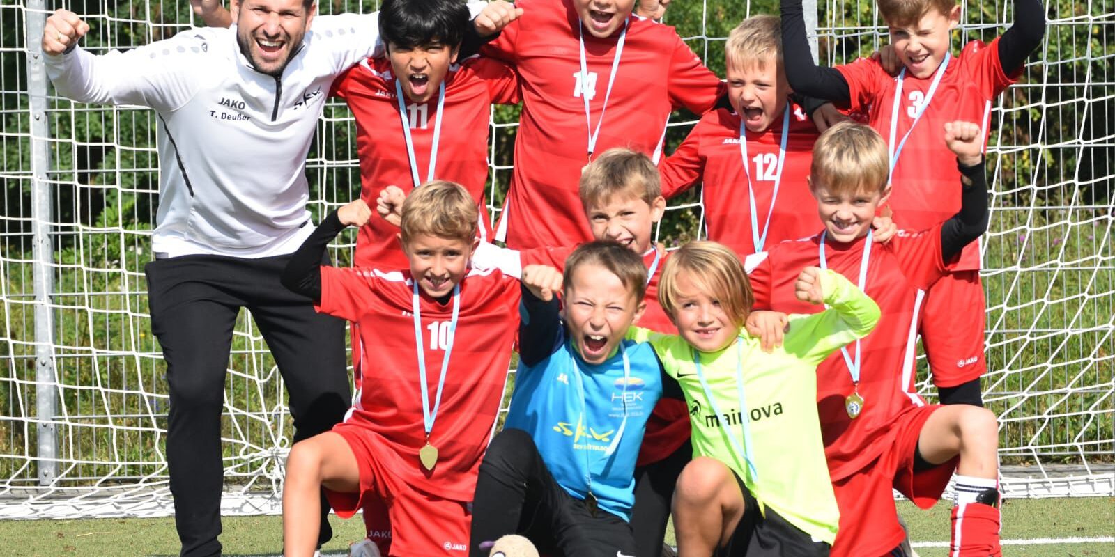 Dichtes Premieren-Program im Zeichen der „7“, viel gelernt. ERSTMALS im „6+1“ (=7!)-Modus traten unsere Jungs im Kreispokal beim Ortsrivalen SV Klein Gerau an. Der Pokal hatte nicht „seine eigenen Gesetze“; als „underdog“ gelang uns immerhin ein Nadelstich zum zwischenzeitlichen 1:4 – ansonsten gab es mit 1:8 eine sehr deutliche 7(!) Tore-Differenz. Nichtsdestotrotz hatten die Jungs sehr viel Spaß und haben bis zur letzten Sekunde gekämpft. Am folgenden Sonntag traten wir bei Hellas Rüsselsheim zum sehr gut besetzten Turnier wiederum im „6+1“-Modus mit 15min Spielzeit pro Spiel an. Wie schon am Vortag bedeuteten u.a. die ungewohnte Länge und Breite des Spielfeldes Einiges an Neuland. Auch hierbei gelang uns in insgesamt 60min Spielzeit der Ehrentreffer erst im Spiel um Platz 7 (!). Insgesamt stehen 2 Niederlagen, 1 Unentschieden und der 1:0-Sieg im Spiel um Platz 7 zu Buche.